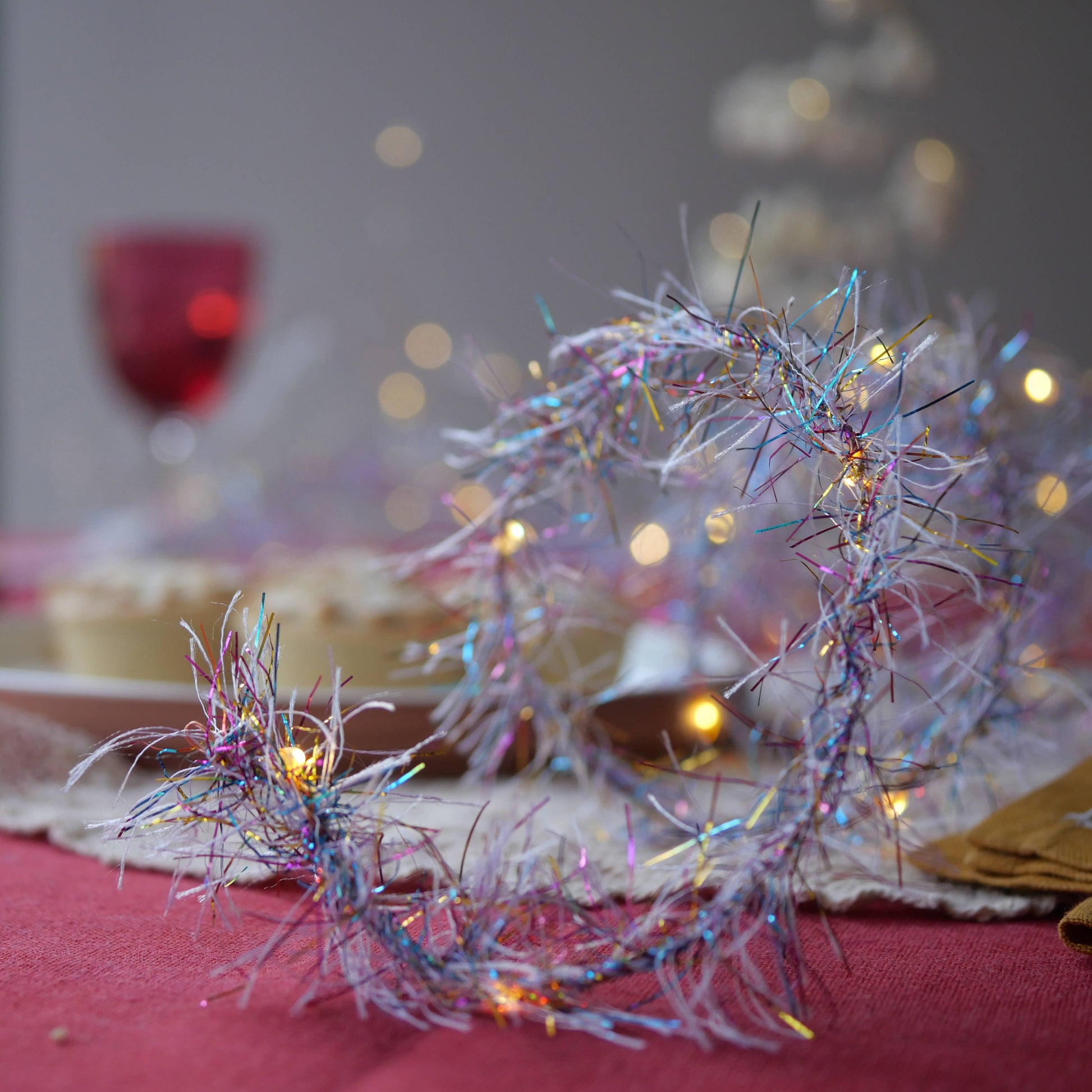 Denne festlige lyskæde er perfekt til Nytårs bordet eller til jul hvis man ønsker en spraglet og finurlig jul.