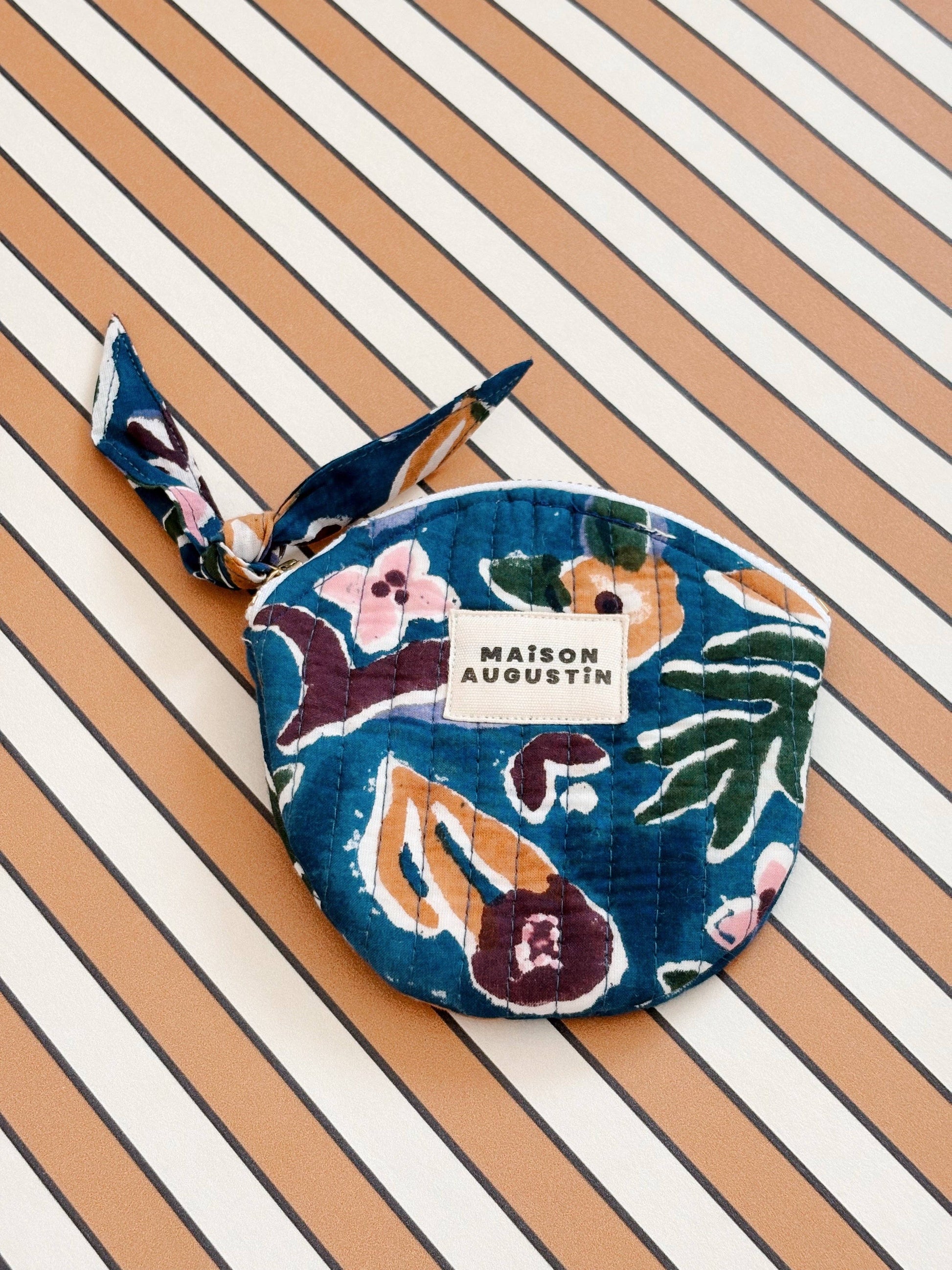Denne pung er håndtrykt ved hjælp af blockprint-teknikken og fremstillet i Jaipur, Indien. Denne håndlavede fremstilling kan medføre visse uregelmæssigheder, der giver pungen charme og gør den unik ♡