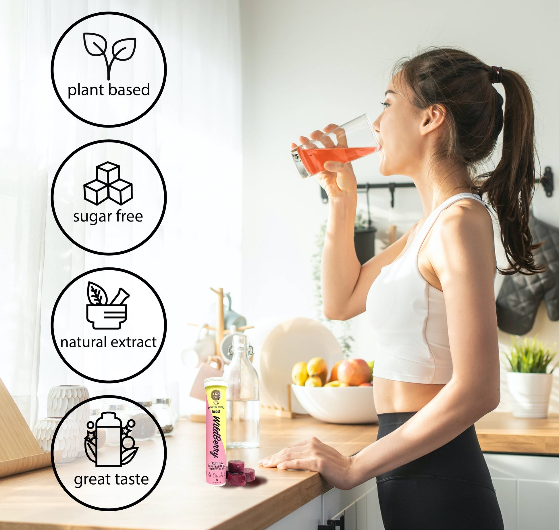 Gourmet Tea-Pop er 100 % naturligt ekstrakt fra teblade, frugter, planter og urter, krystalliseret i en ny form og opløses fuldstændigt i vand, som giver en gourmet te oplevelse.