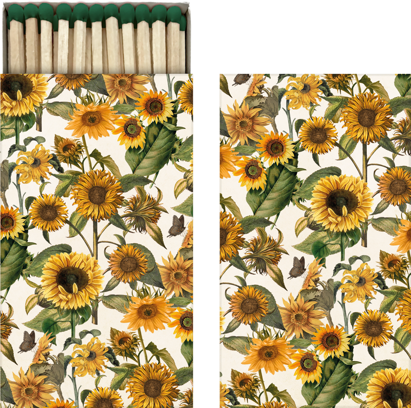 Smukke dekorative tændstikker med solsikker, som ikke kun er praktiske men også pynter i dit hjem. De er ekstra lange så man nemt kan nå at tænde mange lys.