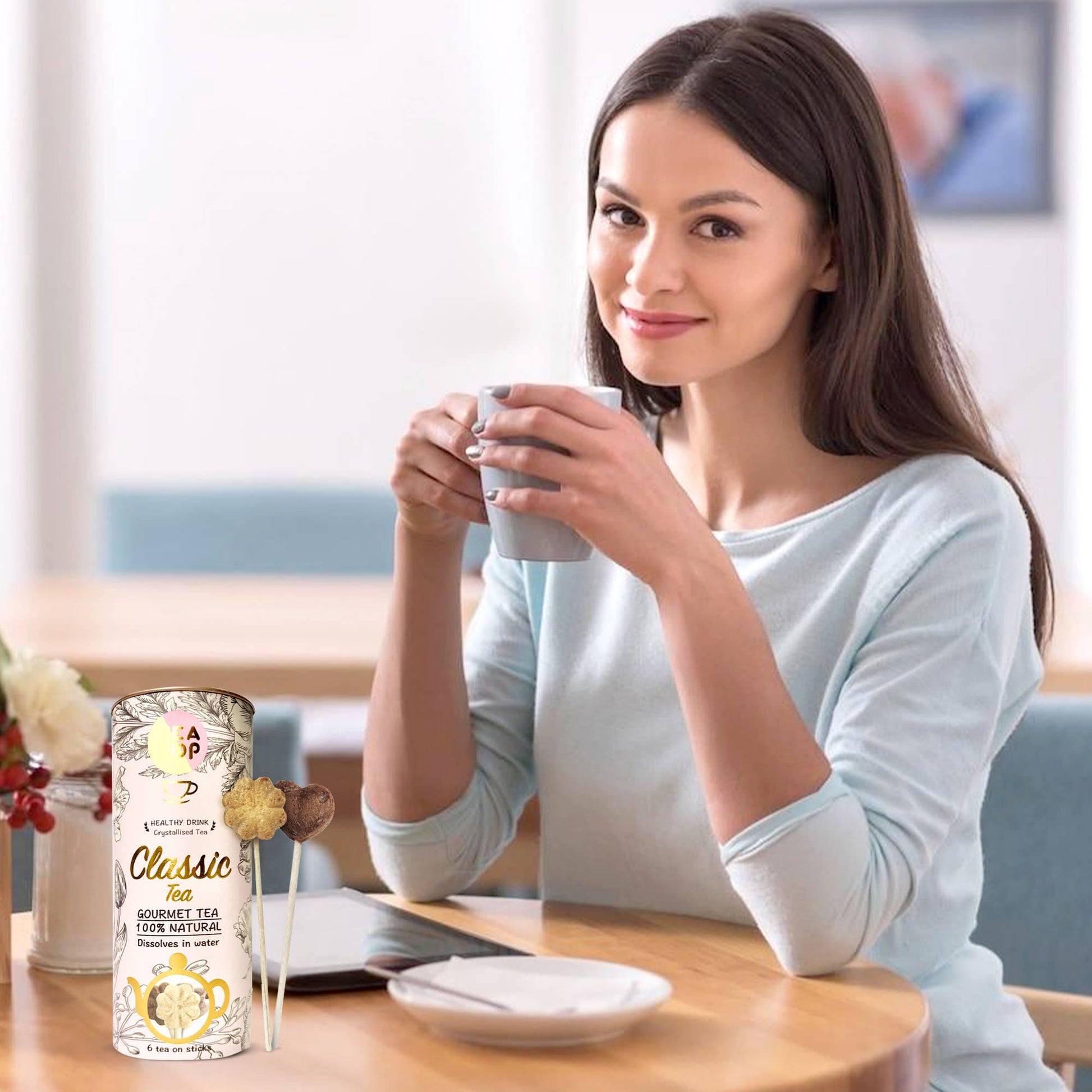 Tea-Pop er 100 % naturligt ekstrakt fra teblade, frugter, planter og urter, krystalliseret i en ny form og opløses fuldt ud i vand for en gourmet-te oplevelse.