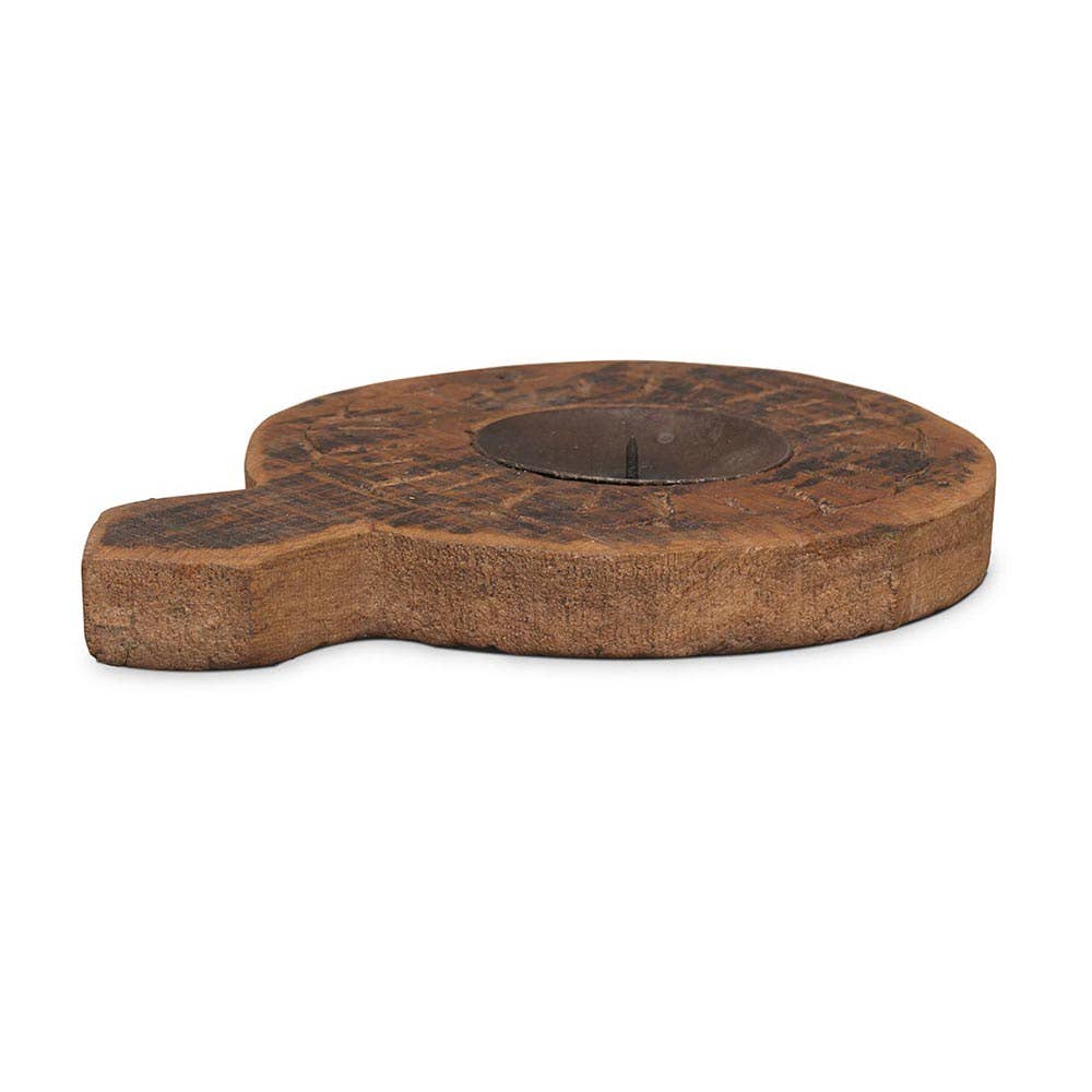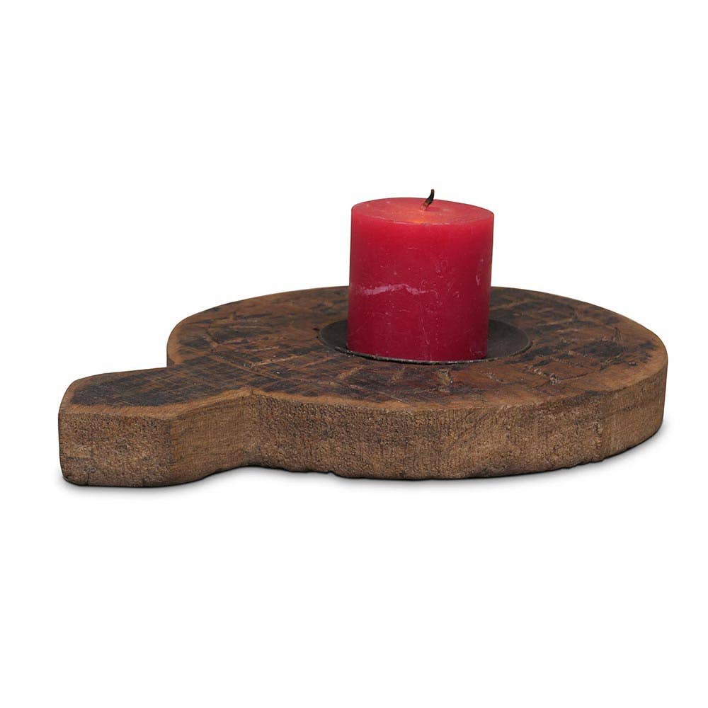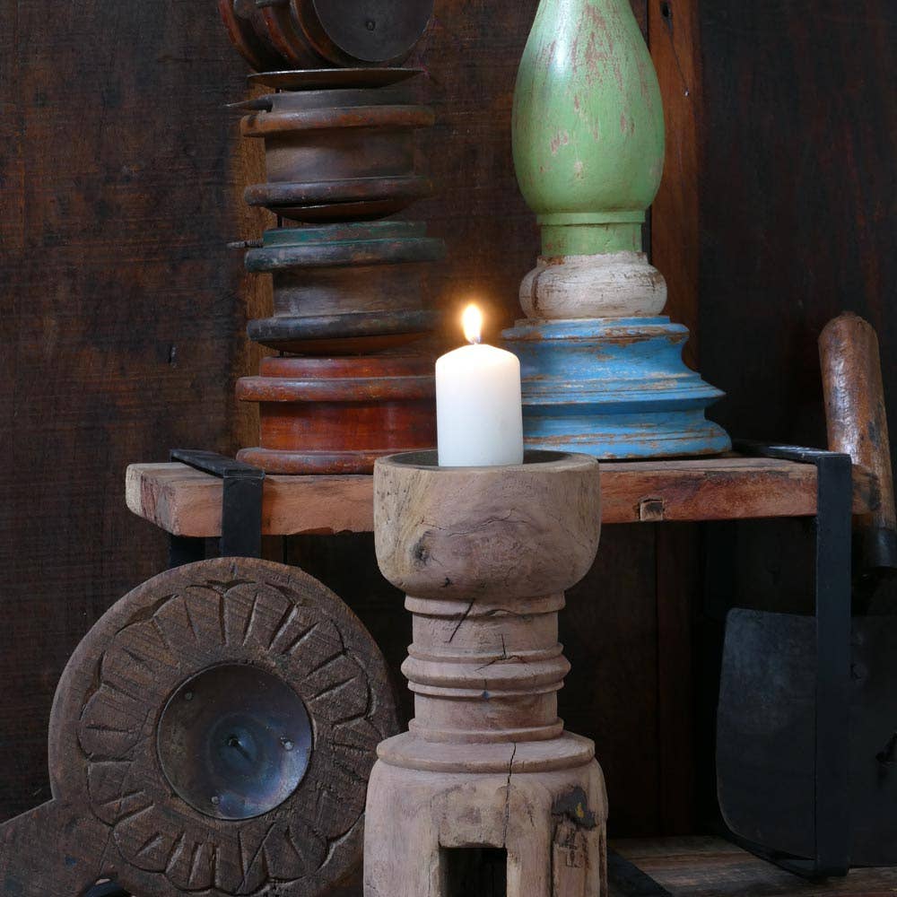 Håndskåret lysestage i rustik stil.
