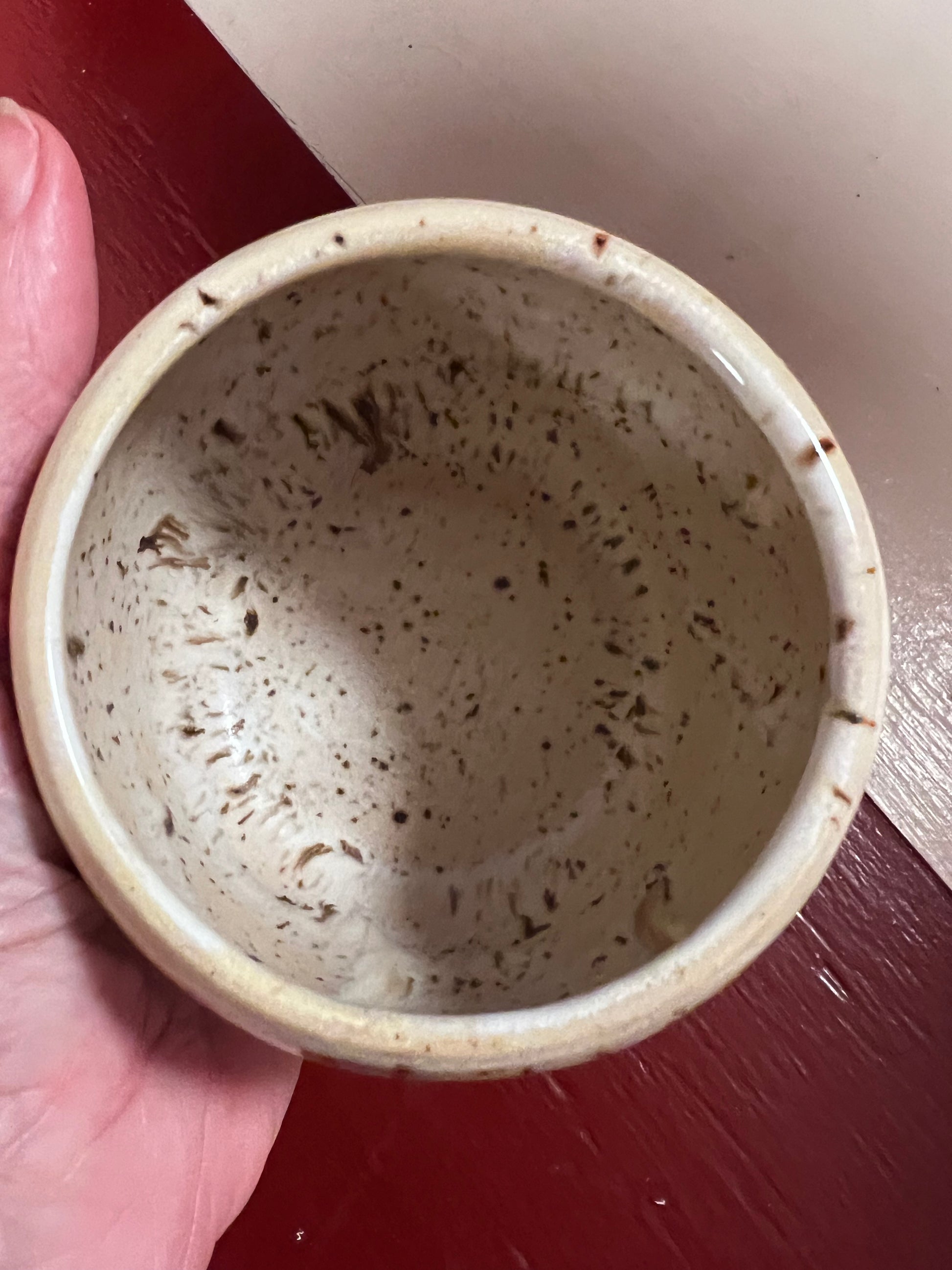 Indersiden fortsætter det rene, nordiske udtryk: en lys, varm beige glasur med smukke brune, næsten fjerlignende mønstre, der opstår naturligt i brændingen. Resultatet er et unikt og levende indre, hvor ingen to kopper er helt ens.
