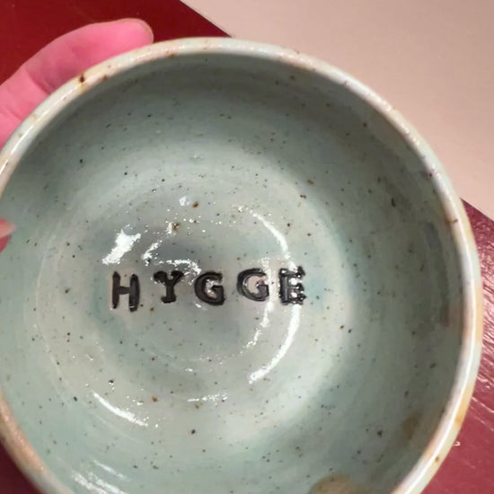 Indvendigt står ordet “HYGGE” – stemplet i bunden – som en lille påmindelse om alt det gode: ro, nærvær, kaffe, snacks eller et øjeblik for dig selv.