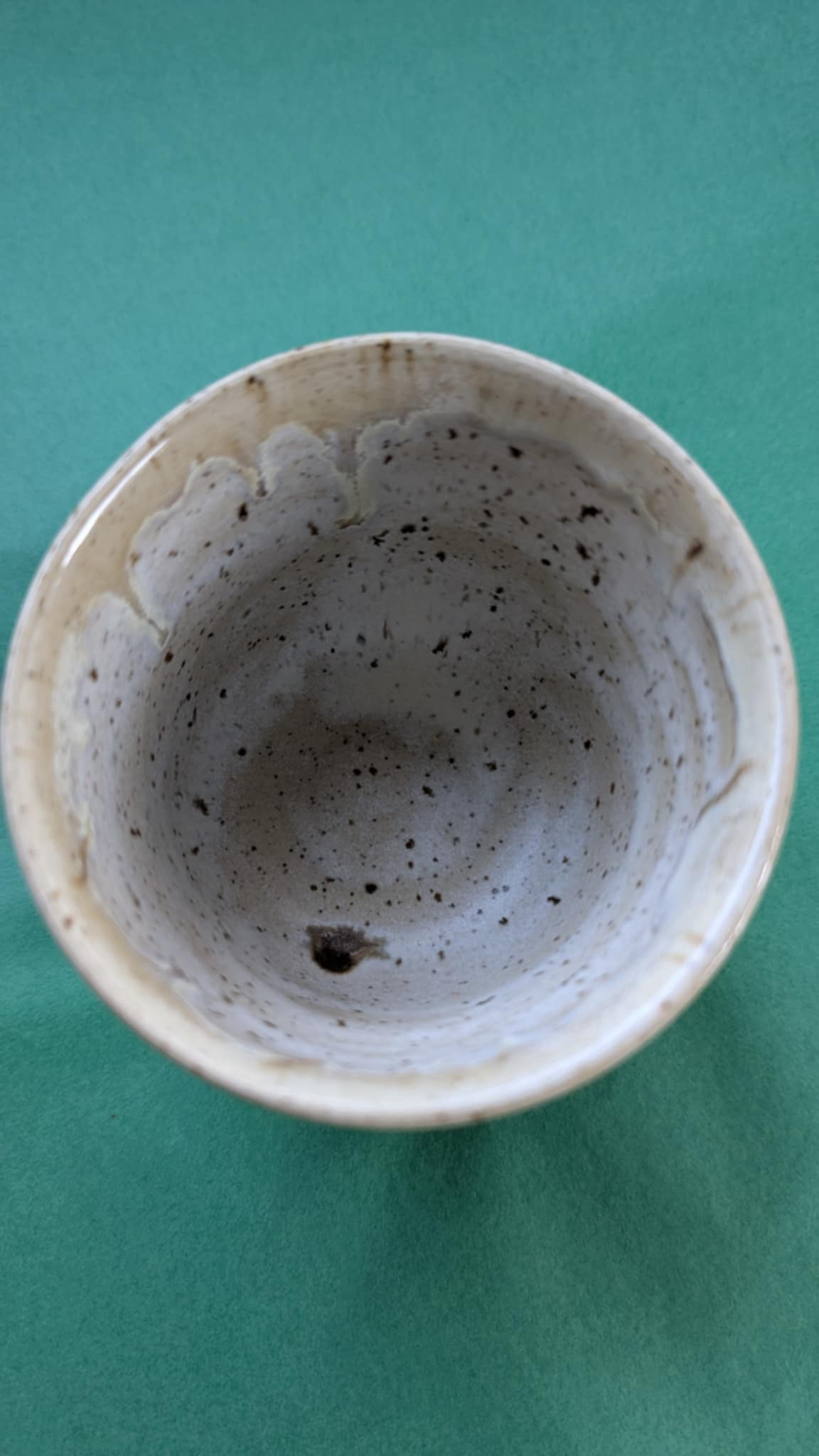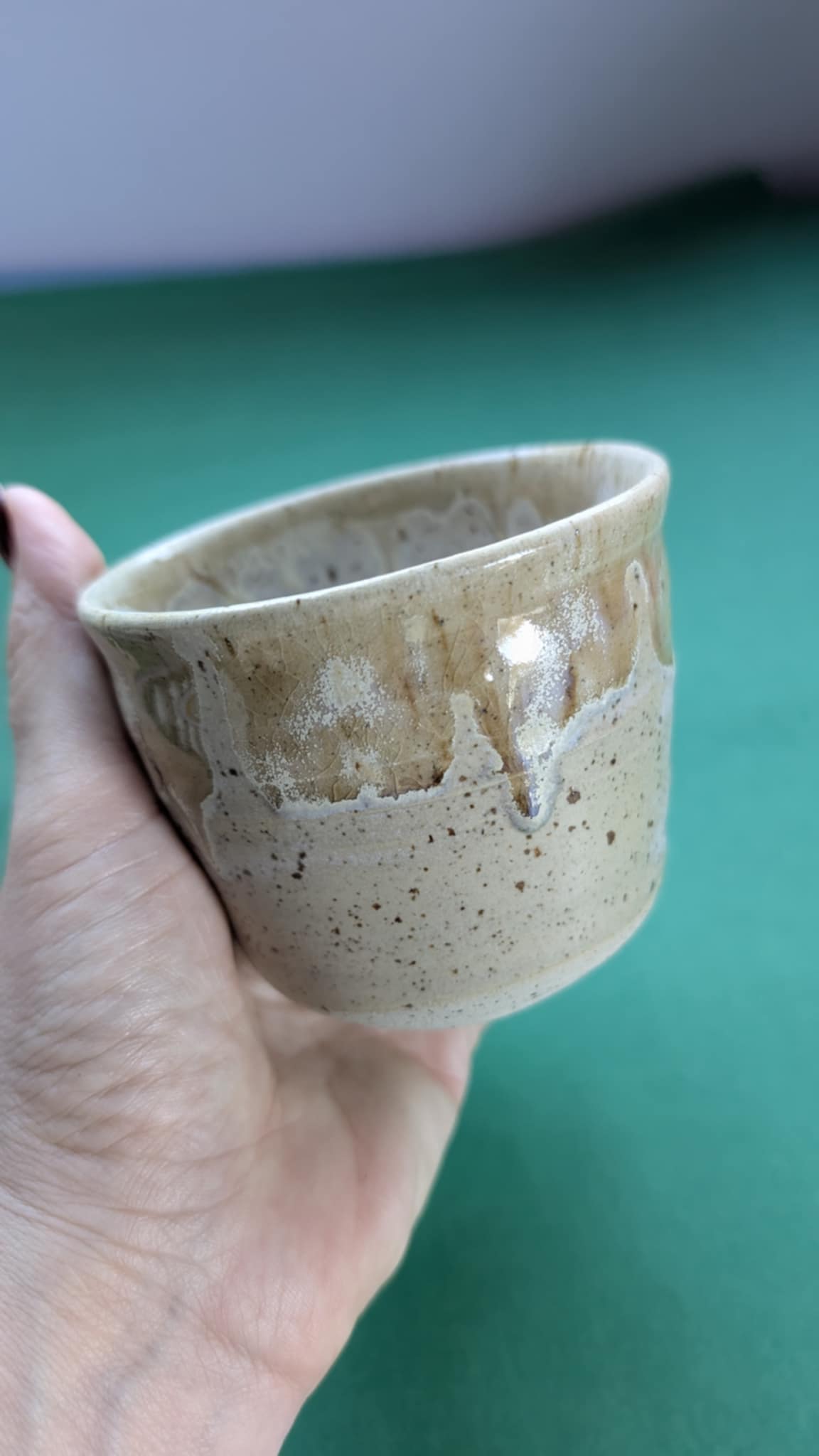 Soft Sands er en håndlavet kop i varme, sandfarvede nuancer. Den nederste del har et naturligt, plettet stentøjsudtryk, mens den øverste halvdel er glaseret med en blød, beigefarvet drip-effekt, der flyder ned over kanten som rolige bølger. Indeni fortsætter det lyse, organiske look med fine prikker og lette farvespil. En lille, rund og behagelig kop med et roligt, jordnært udtryk – som at holde et stykke strand i hånden.
